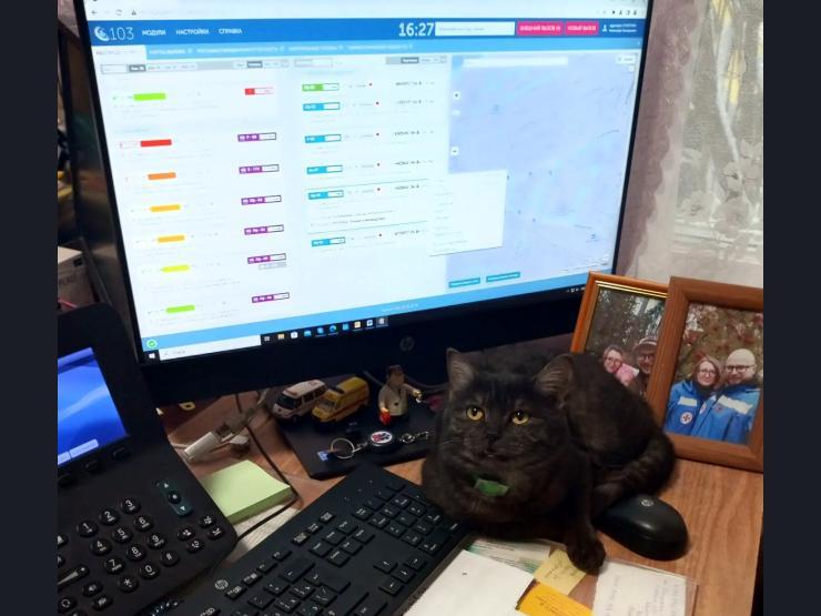 «We have a cleaner for the service rooms. She«s his love, so to speak. She comes to work, he follows her. At night in the dispatch room, he »works« with the girls—calming nerves. Doctors come back tired from calls, chat with the cat—and feel better. He meows, asks for attention, a very talkative fellow of ours,» concluded Yekaterina Khristenko.