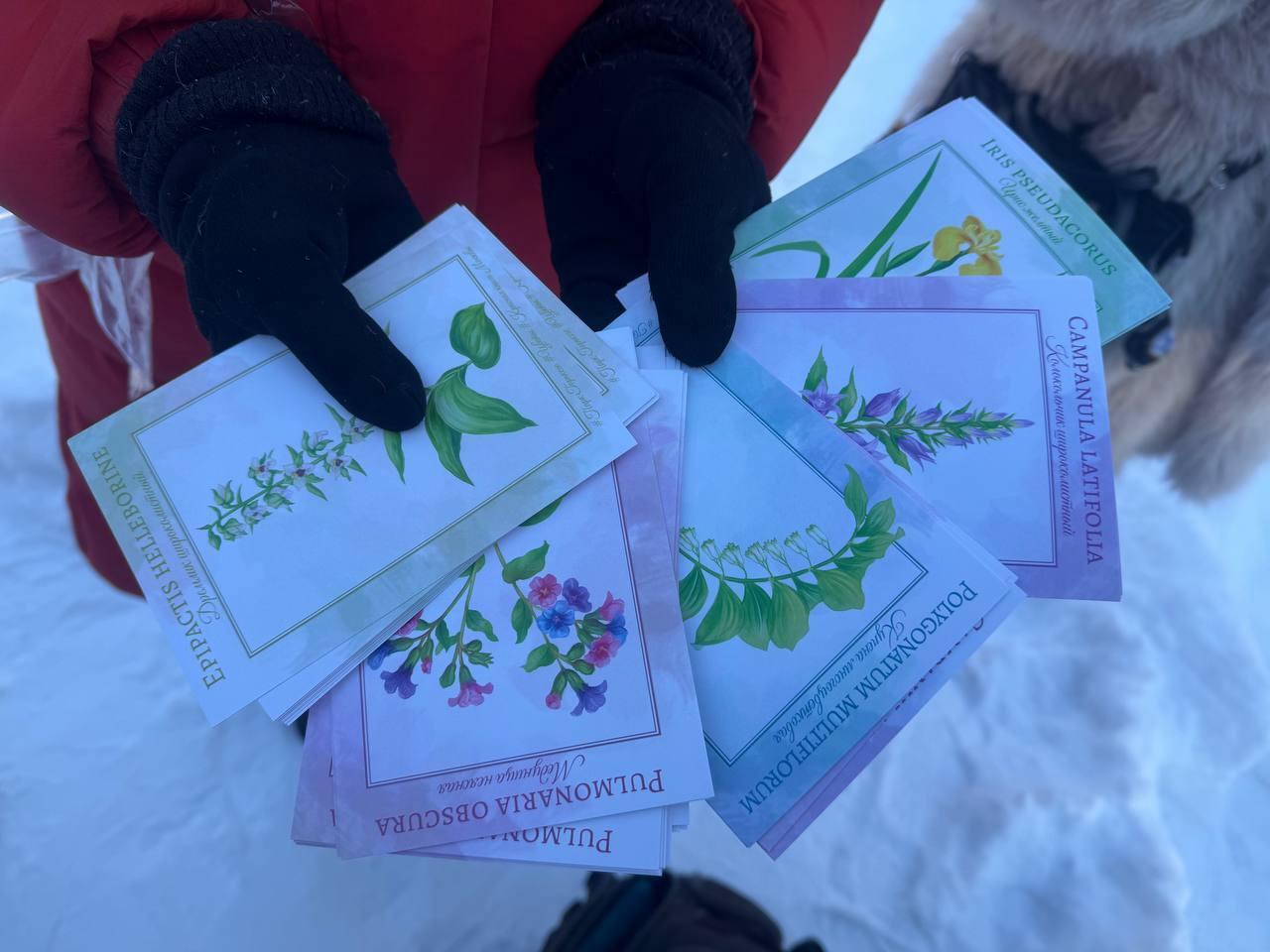 Other groups had varying results: some, like us, found eight, some found three, and some didn«t encounter any. At the end of the event, all participants received a memo about squirrel life and authorial postcards with drawings of plants from Neskuchny Garden by biologist and artist Anna Gerasimova.