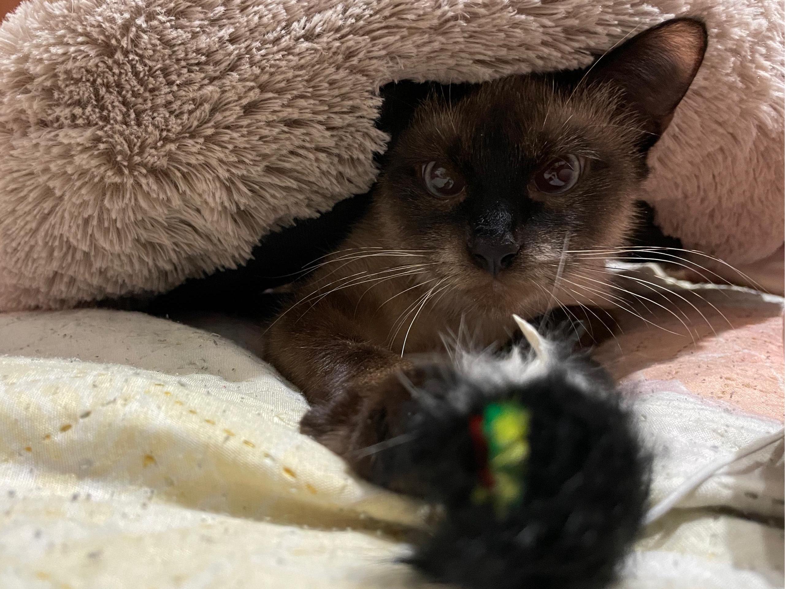 «In November, we noticed that someone had dumped an adult Thai cat in the basement of the house, we thought it was a male. The cat often appeared near the house, playing on the ground. But the cold set in fairly quickly, and we felt sorry; it was clear that it was domestic and purebred, and such animals have a harder time surviving on the street. In the building»s chat, no one responded to the question if anyone had lost a cat, and the owner didn«t appear online either. We already had a cat ourselves, also Thai, so we decided to rescue and adopt a new member into the family.»