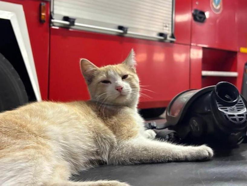 The cat diligently oversees the fire station«s daily operations as if on duty.