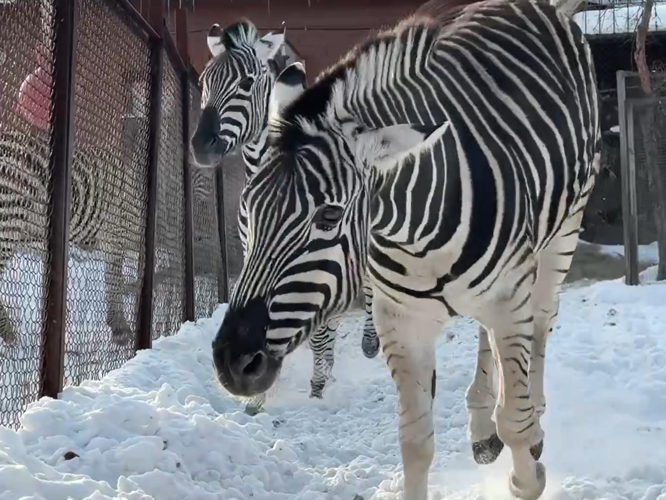 At the Chelyabinsk Zoo on Saturday, January 31, they celebrated International Zebra Day. No speeches or solemn assemblies. Instead, a festive lunch was prepared for the striped pets: fresh spruce branches and carrot slices. In Chelyabinsk, there are currently three zebras — a male named Henry and his two companions Zara and Zephyrka. Watch the cute video shot about them.