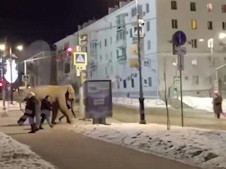 Video footage shows the elephant casually walking along a street in downtown Samara during the evening.