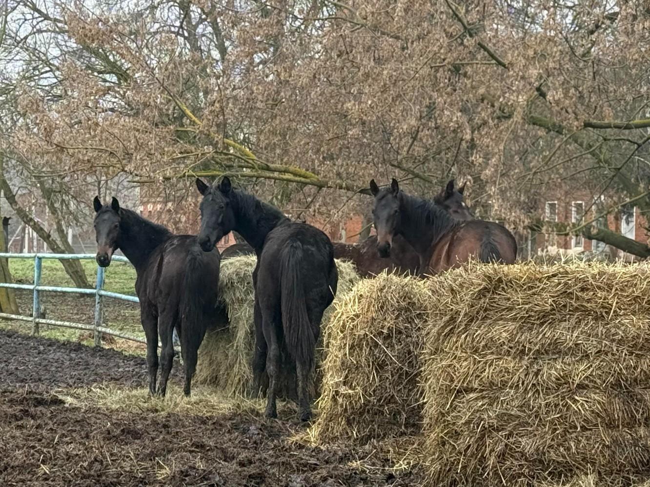 We arrived an hour before the meeting and were able to walk around the farm grounds and meet the horses. It«s slushy outside but not cold. The horses are leisurely walking in the paddocks — fenced-off areas, quietly chewing hay, and greet us with friendly curiosity. Stallions and mares are kept separately.