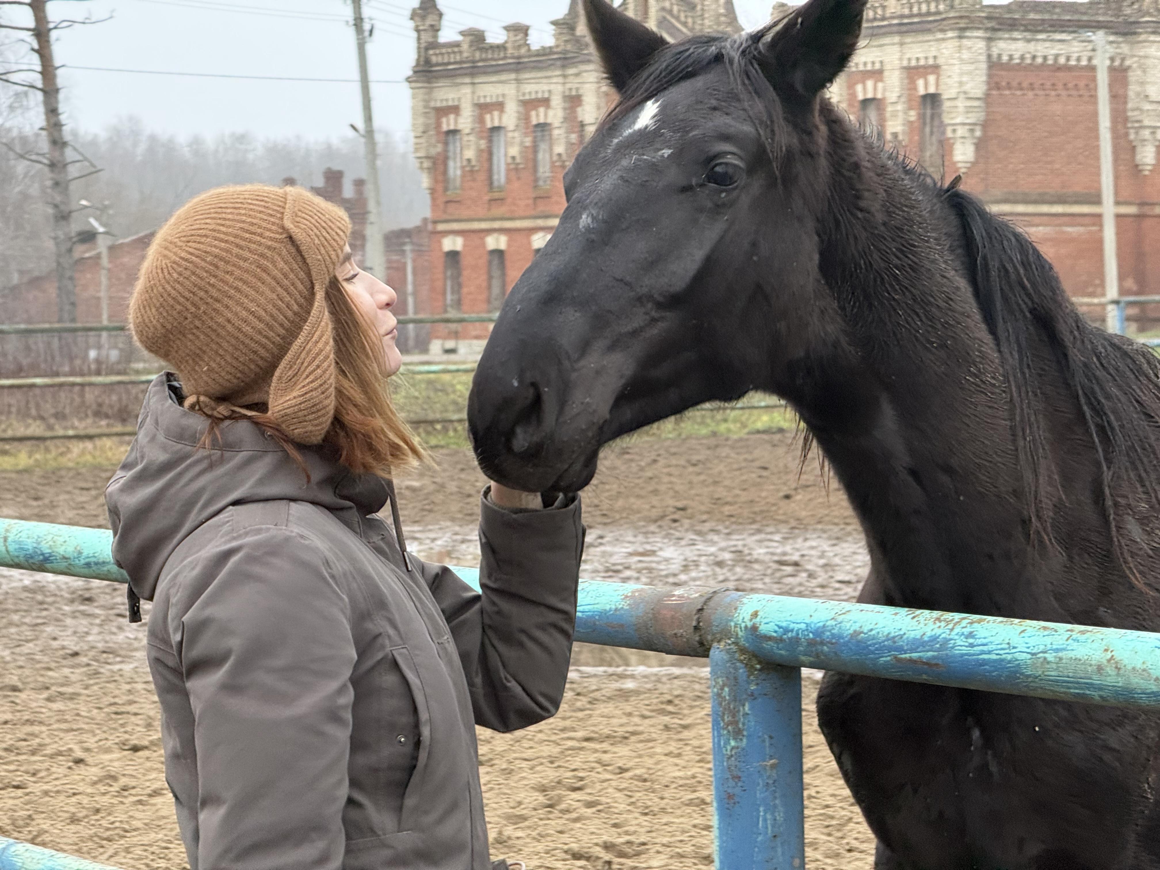 I«m one of those people who love horses but can»t find a common language with them — if I get on a horse, I«m the one from the whole group it tries to buck off; if I try to feed or pet one — I»m the one it tries to bite or kick. They say horses sense inner uncertainty in handling and don«t tolerate people who doubt their own abilities. But these horses turned out to be very good-natured. No aggression — just interest and curiosity. There»s practically no one on the grounds — we meet one employee and then two young people. As it turned out, they are undergoing veterinary practice and came here all the way from Nizhny Novgorod Oblast. They dream of working specifically with horses.
