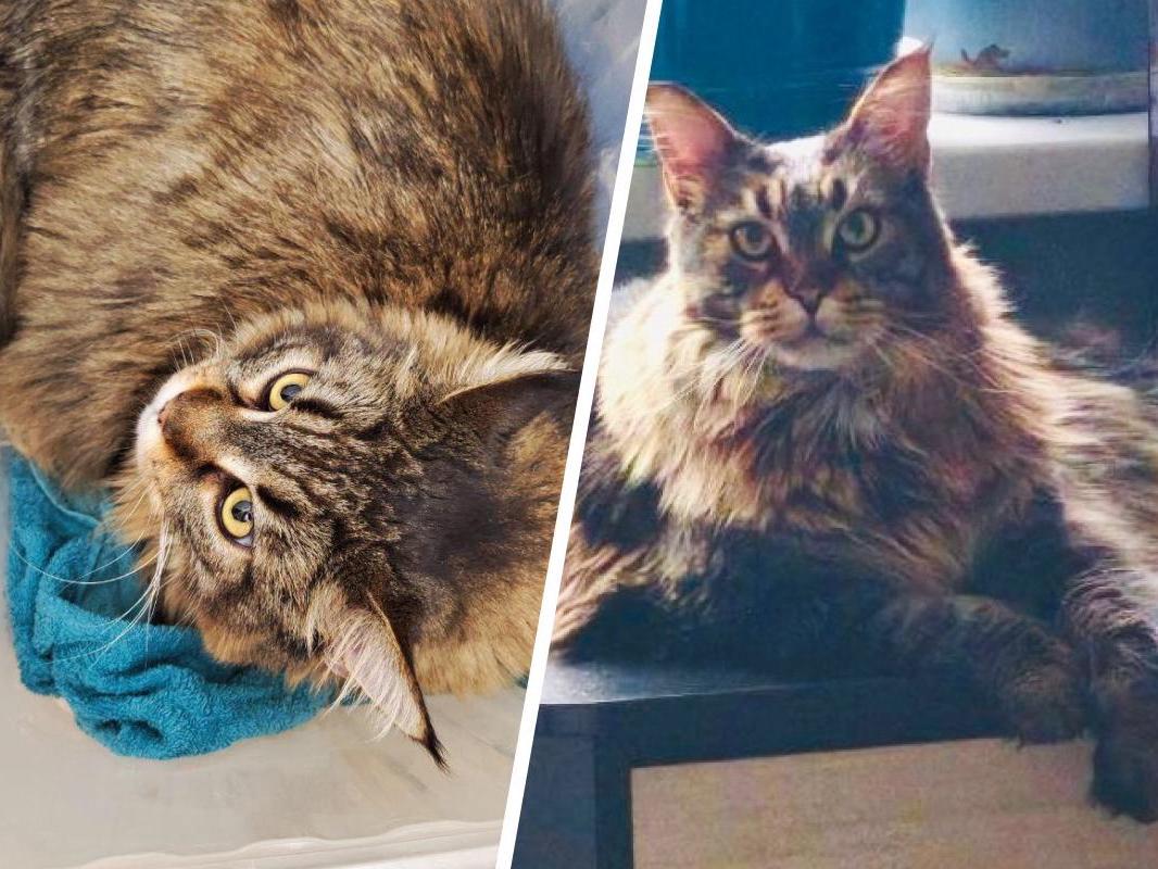 Recently, a 15-kilogram (33 lb) Maine Coon named Murka arrived at the Perm shelter «Murcot». She was brought there directly in a plastic container. Murka found a new home in less than two days.