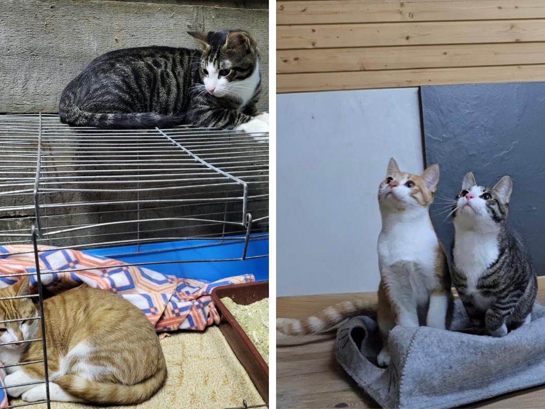 The two cats are currently in an unheated temporary shelter and need a warm home for winter.