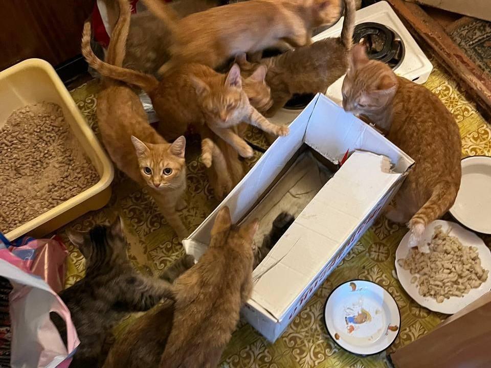 In a small apartment of a Perm pensioner, 18 cats and three month-old kittens were crowded. The grandmother did not always have enough money for them because her alcoholic son took all her pension, and moreover, he beat her. Now volunteers bring food to the woman and are finding homes for the animals. Her tormentor son has stopped the beatings because he is afraid of the shelter«s employees.