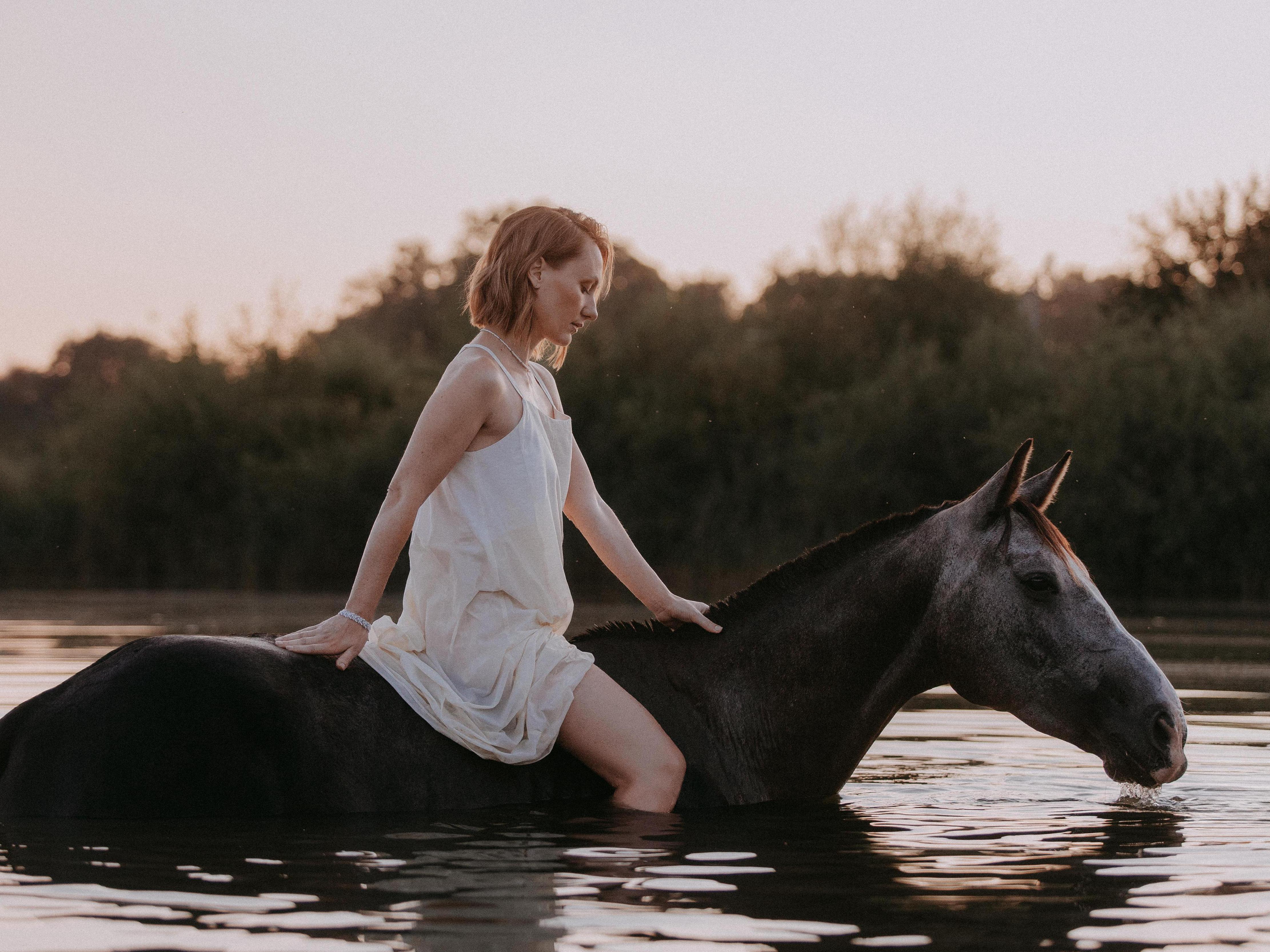 From the interesting things—last summer, there was an opportunity to shoot with horses in a water body. A challenge for both me and the instructor, as she has to swim each time with the shoot participants. But the emotions from the process and the result are always amazing.