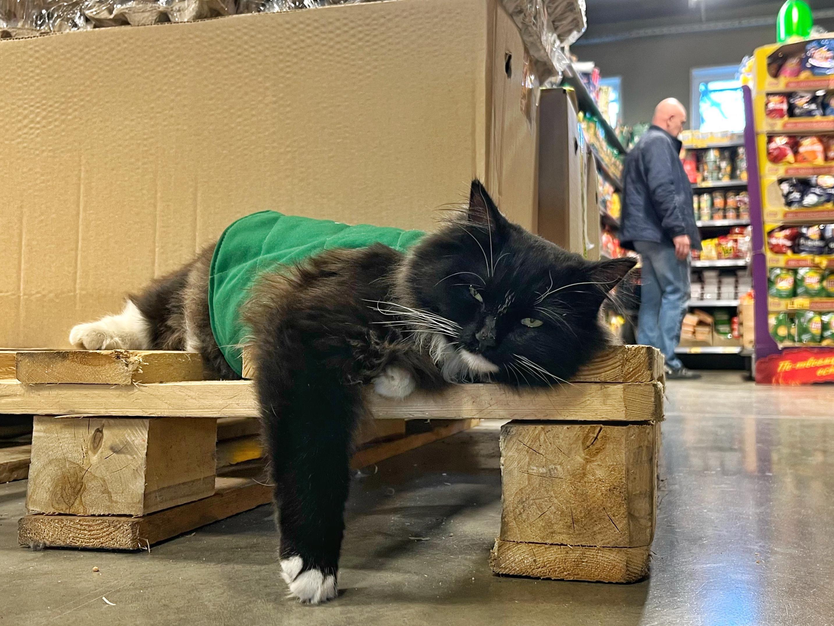 After the cat was given the branded vest, the situation resolved — now she is not just a stray but an official employee. Sometimes customers still ask to «give» the cat a home, but without extremes.