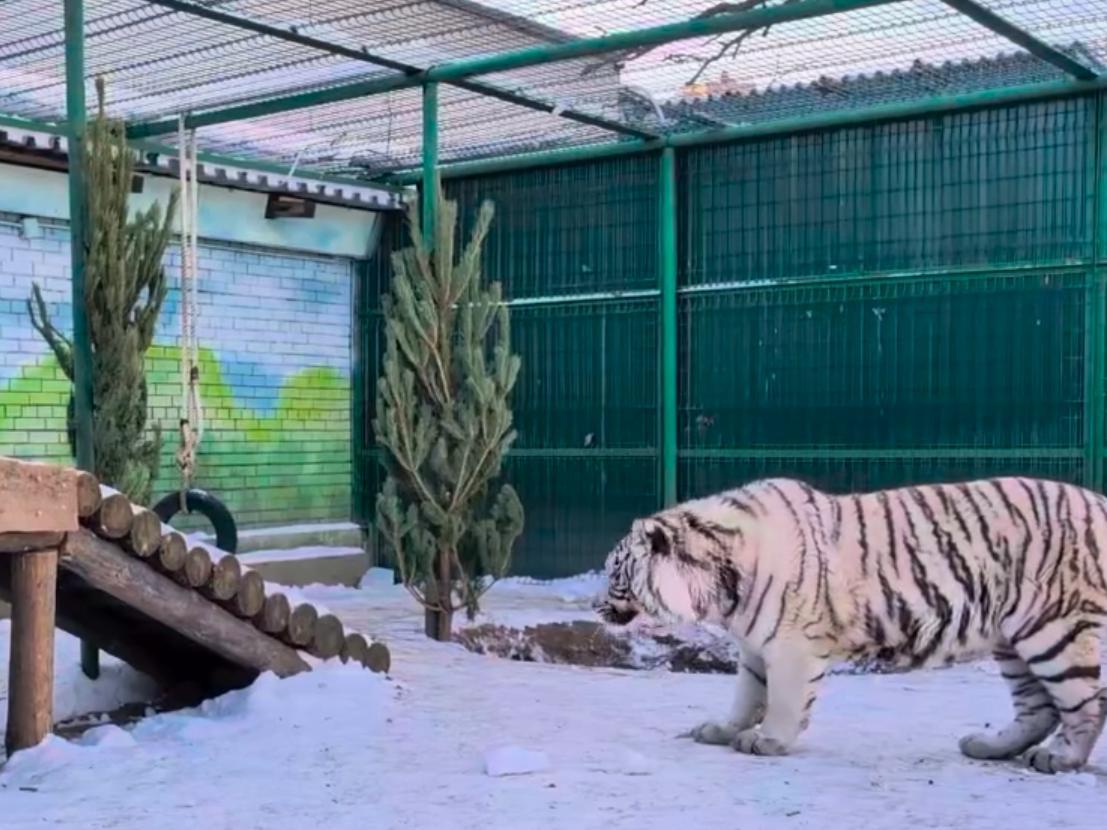 Tiger at Samara Zoo Unimpressed by Gifted Fir Trees in Video
