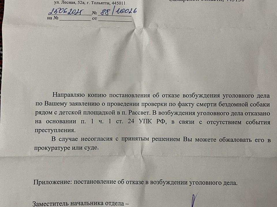 « — I advise sending this appeal simultaneously to the Stavropol District Police Department, the district administration, the head of Stavropol District, and a deputy, so one body monitors another. Wide public resonance through the press will also help exert pressure and bring the issue under control — we must sound the alarm on all fronts, » — said the dog trainer.