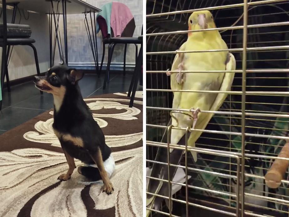Legless puppy Martin and parrot Ashik were allowed into the warm guesthouse.