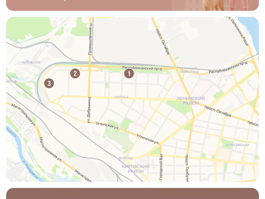 Zavolzhsky District provides three dedicated areas for residents to walk their dogs safely.