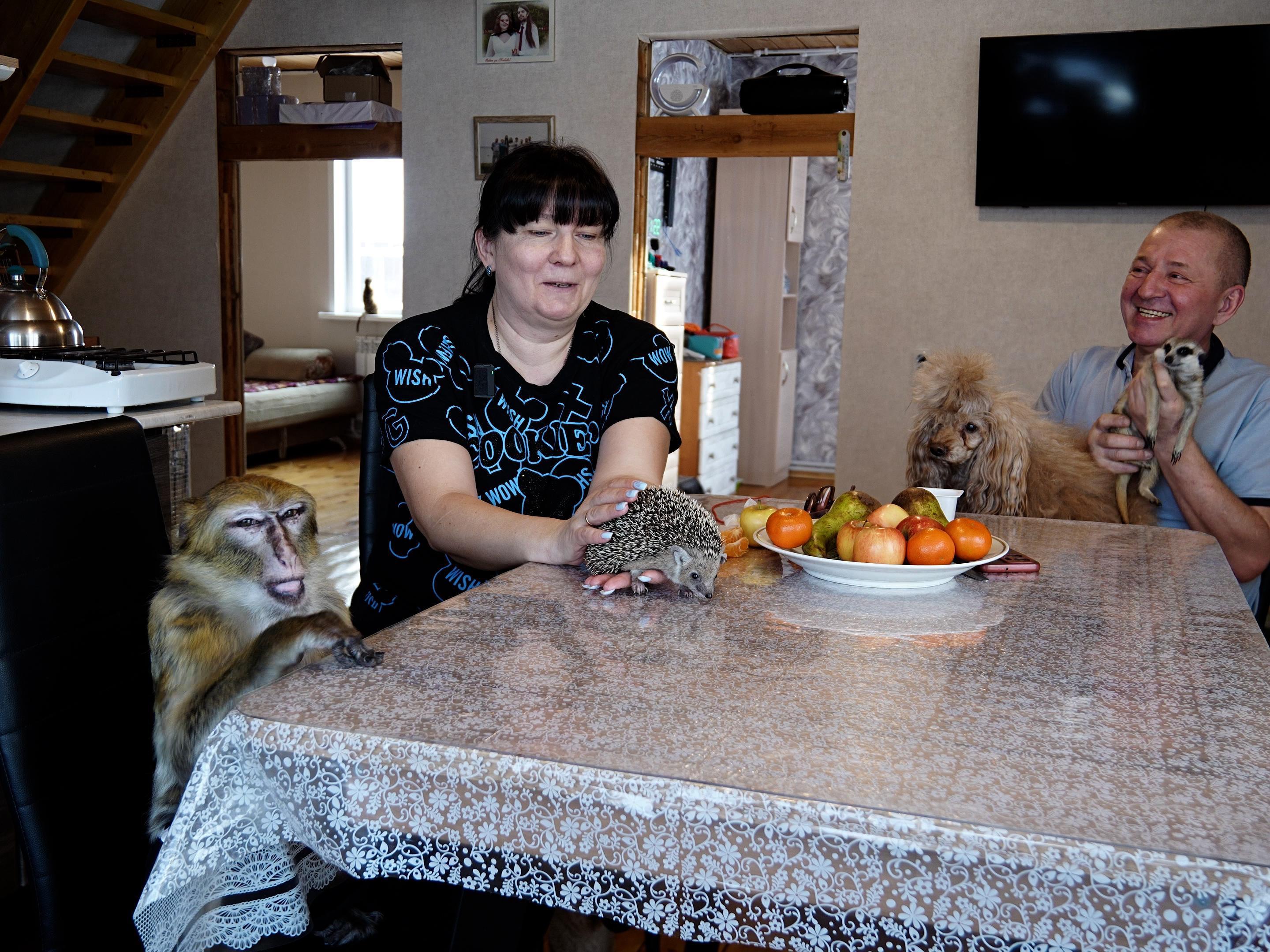 All animals are kept by the Kagramanov family at their own expense. The main expenses are specific food for meerkats and regular medical check-ups. Examination and treatment are done at one clinic where there are doctors specializing in exotic animals.