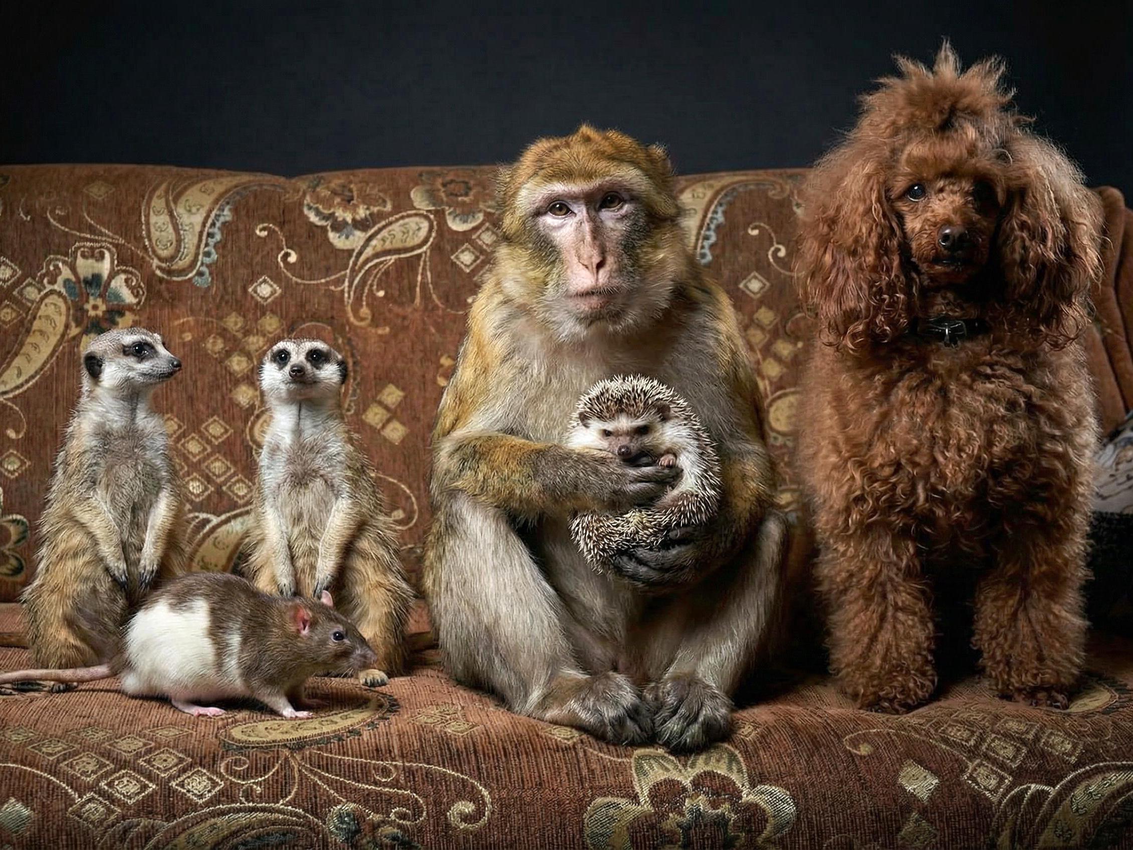 In everyday life, the animals have their own internal family hierarchy. The meerkats are the instigators and pranksters. They like to pin down the hedgehog and ride on him. Sometimes they «annoy» the dogs with their pestering, then the poodles start getting angry. In case of conflict, Yasha acts as the arbitrator.