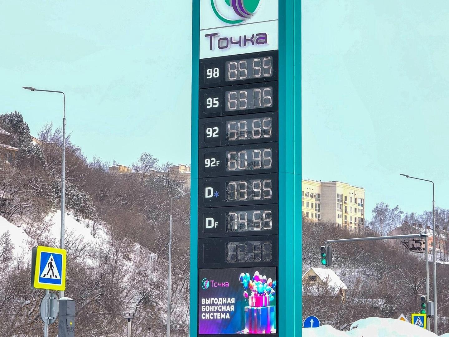 At Tochka, A-92 is also divided into classes. Regular 92 is sold for 59.65 rubles per liter (about $0.66), and 92-F — for 60.95 rubles (about $0.68) (usually this letter denotes fuel with lower sulfur and benzene content; the mark «Euro» is also used, as at the stations above). Diesel is also divided into two types — for 73.95 and 74.55 rubles (the more expensive one is also F). 95 octane costs 63.75 rubles per liter (about $0.71), and 98 octane — 85.55 rubles (about $0.95).