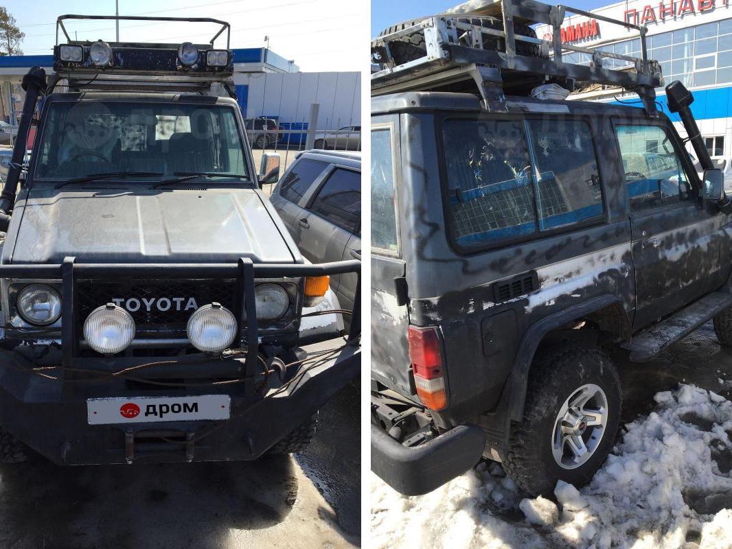 The Toyota Land Cruiser Prado (J70 series) from 1988 is for sale in Novosibirsk for 1,250,000 rubles (approximately $13,500 at current rates). This model has a history and reputation that will be appreciated by connoisseurs.