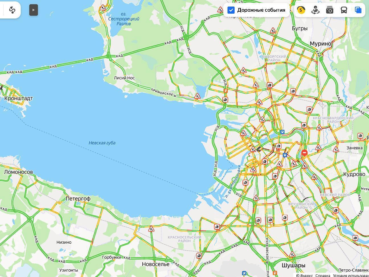 The formation of traditional evening traffic jams was just beginning. The heaviest traffic was observed on Sverdlovskaya and Vyborgskaya embankments.