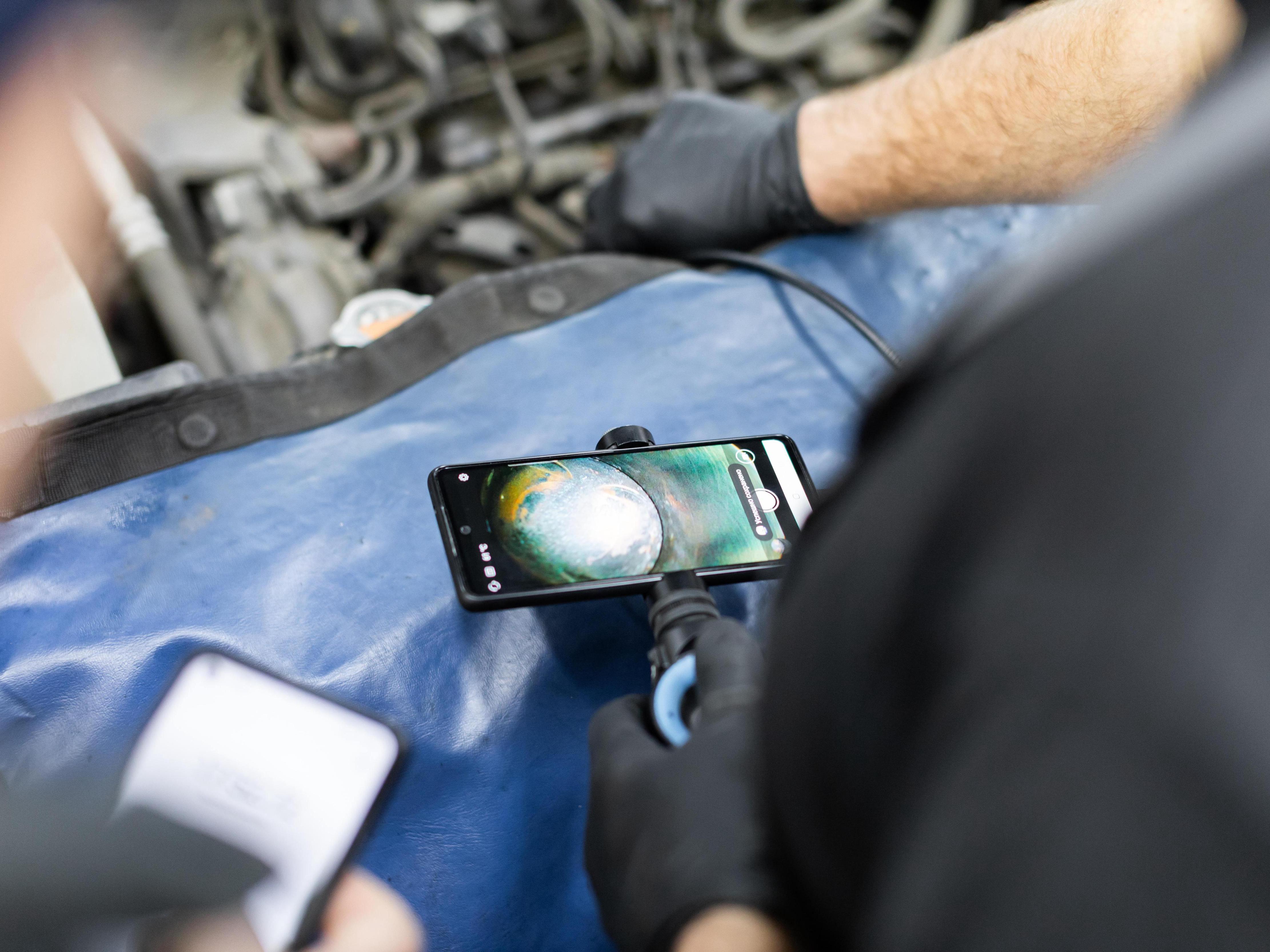 Using an endoscope with a camera, Petr Pavlov examined the internal condition of the cylinder working surface.
