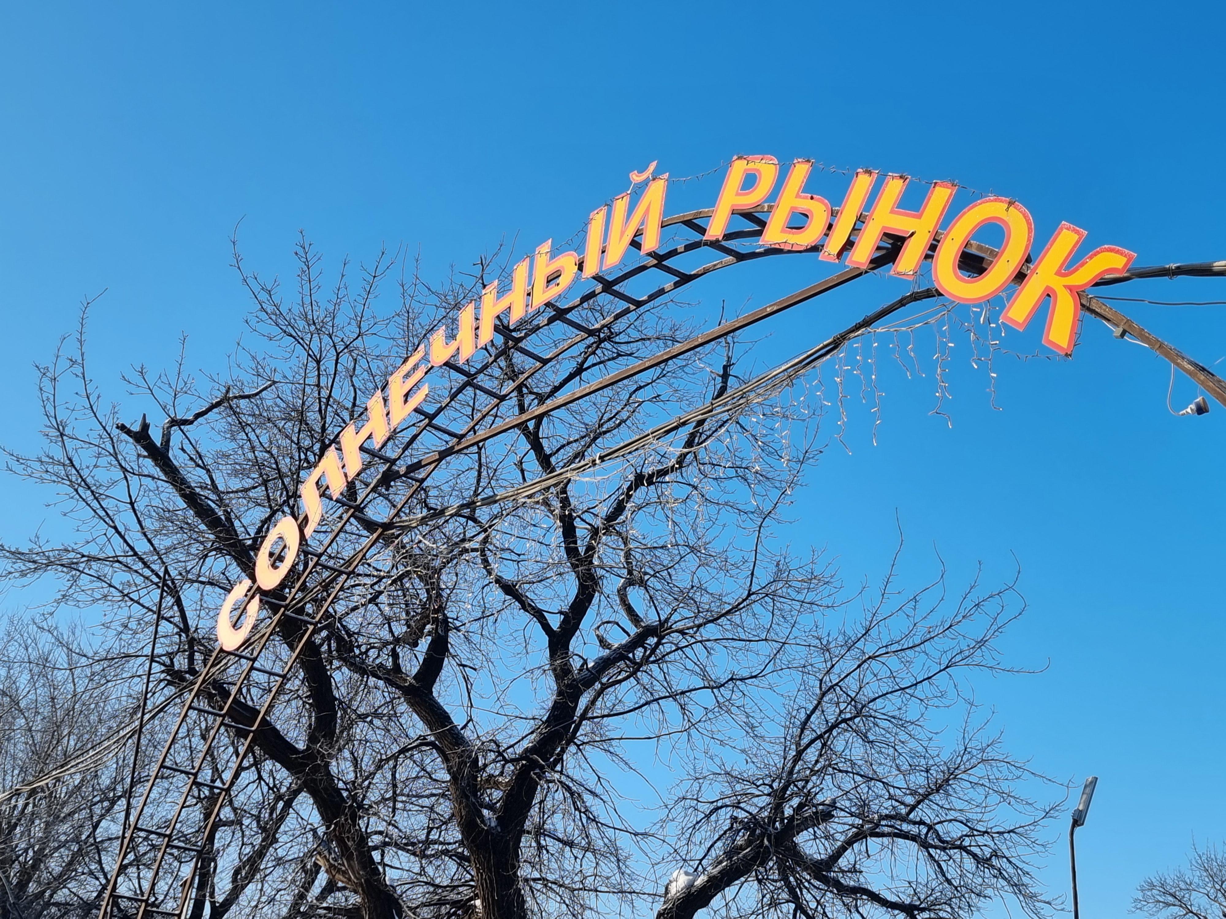 And here it is — the Solnechny market. For some reason, the entrance group reminded us a bit of a cemetery. In principle, this is not surprising — a graveyard is located nearby.