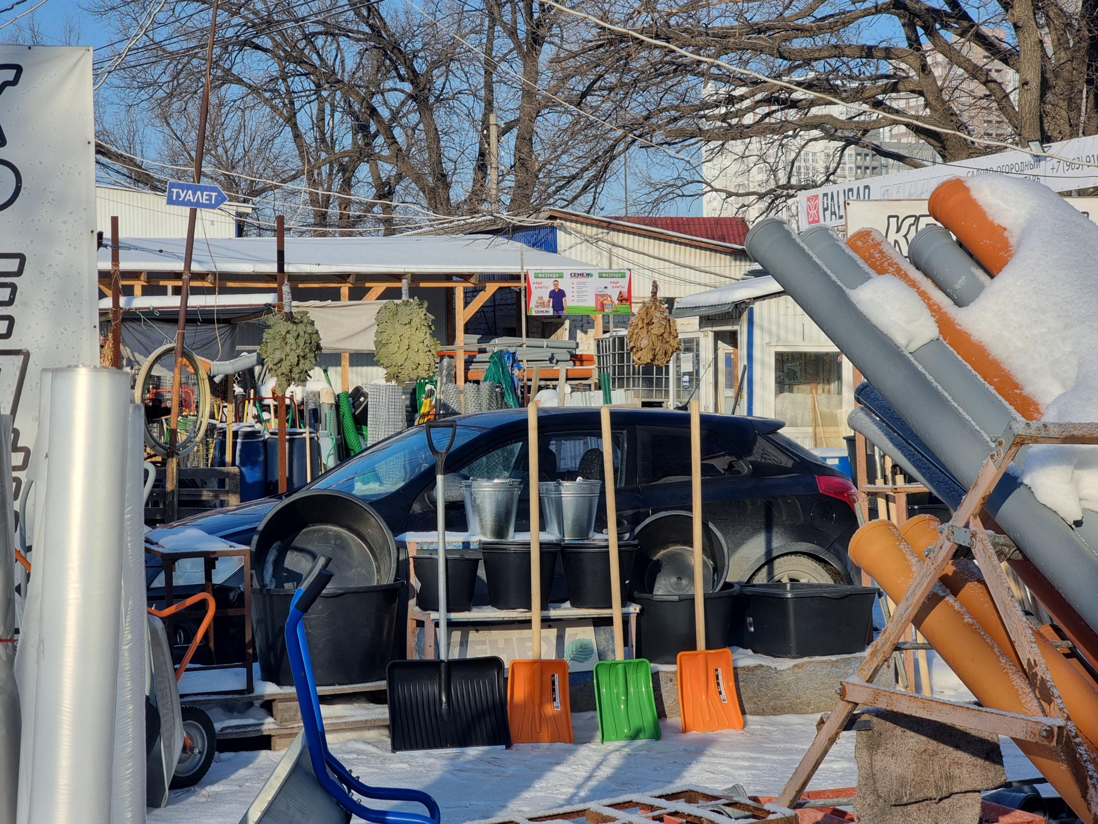 The first and main difference of Solnechny from the previous markets we reviewed is the assortment. You cannot buy vegetables, fruits, meat, bread, or fish here (although we are ready to argue with the last two points). But construction materials, goods for the dacha or country house, animal feed, spare parts, or seedlings — easily. In short, everything that is needed for the last journey can be purchased at the last minute if you are leaving the city — for the dacha, for example. And considering the car wash and tire service located here — you can also get your car in order.