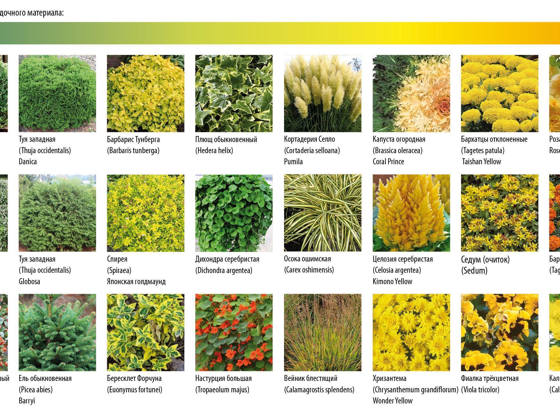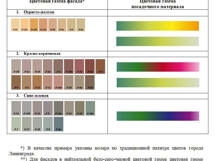 - For ochre-yellow walls, a yellow-green color scheme of plants is recommended, such as common boxwood, western thuja, and roses.