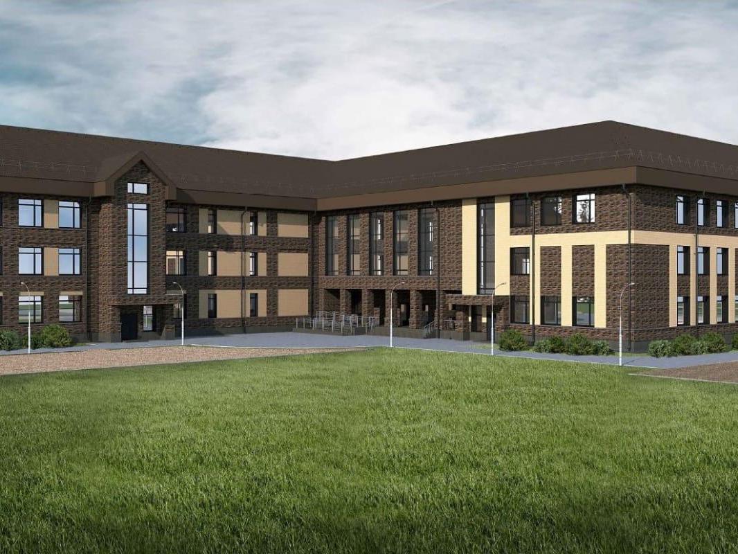 This visualization shows the planned appearance of the completed school project.