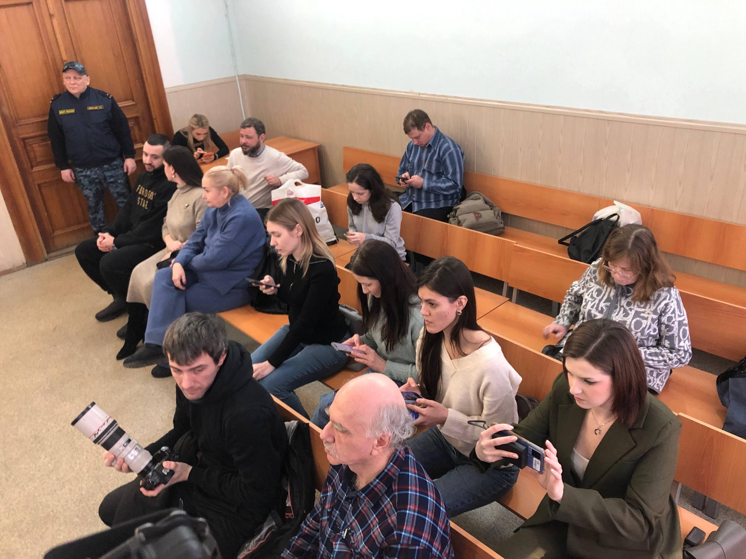The hearing was scheduled to start at 14:00, but was delayed by almost an hour. Ekaterina Tarkhova was brought in only at 15:00.