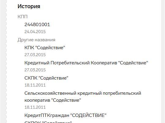 «The credit cooperative «Sodeystviye» was registered as a legal entity on 23.09.2013 by Interdistrict Inspectorate No. 7 of the Federal Tax Service for Krasnoyarsk Krai and registered with the tax authority with TIN 2445003112, main state registration number 1132448001047. The founder of the legal entity is PERSON № 1», — a quote from the verdict.