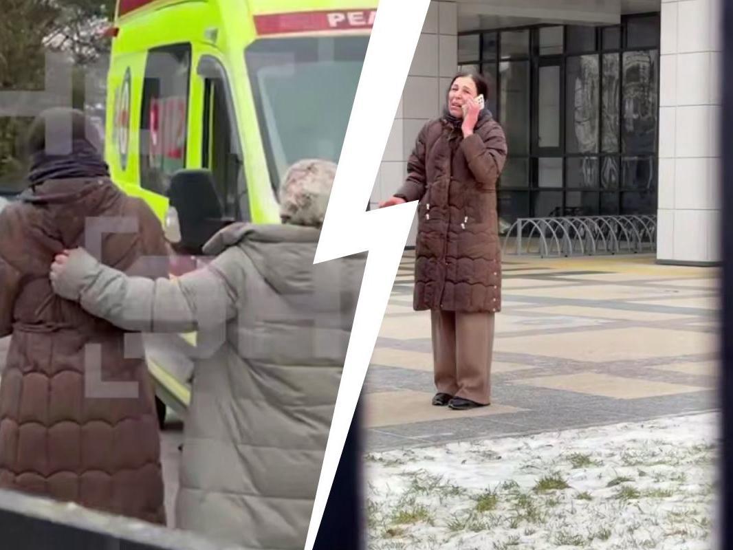 In footage published by Telegram channels, the mother is seen running to the school in tears. Then she stands hugging another woman near a resuscitation vehicle.