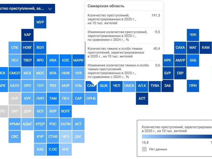 «The rating was built by ranking regions based on the number of crimes registered in 2025 per 10,000 residents. The study also analyzed data on the number of serious and especially serious crimes, as well as the dynamics of registered crimes.