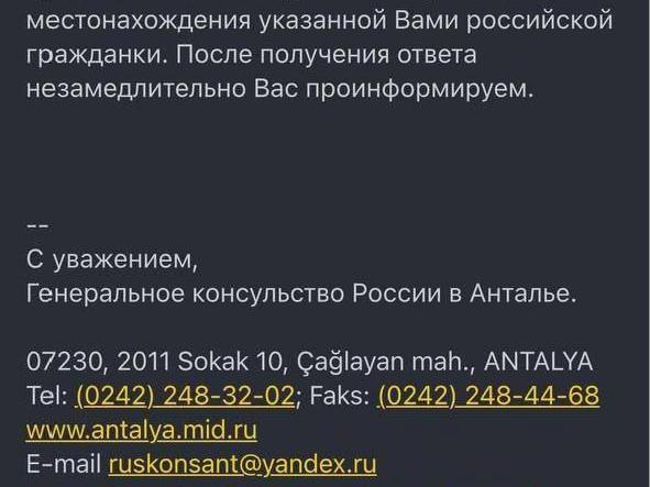 — The General Consulate has sent a request to the Turkish side asking for assistance in establishing the whereabouts of the Russian citizen you indicated, — the agency«s response states.