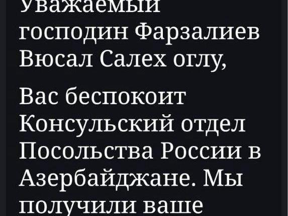 Diana Tsomartova immediately asked the man to contact the police as a witness and explained that she could not do this herself from Russia in another country. Farzaliyev did not immediately understand that this was an important step, after which the investigator could conduct a check. Diana explained to him what steps needed to be taken. He did not want to get involved with the police. But after lengthy conversations, Vusal Farzaliyev still contacted law enforcement agencies and the Russian consulate in Azerbaijan.