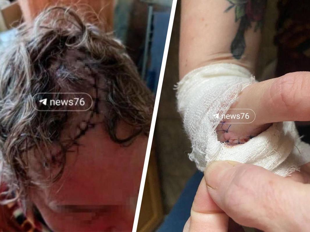 A Yaroslavl pensioner, who was attacked by a deranged man in a grocery store in the Krasnoperekopsky district, has shown photos of her injuries. As told by the victim«s daughter Vera to 76.RU, her mother Lyudmila received stitches on her head and arm. The 55-year-old pensioner is now afraid to go out alone on the street.