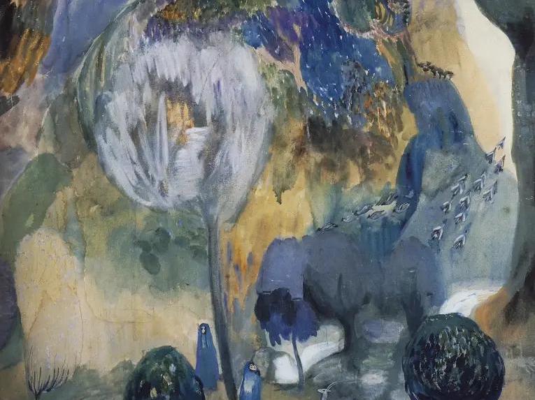Impressions from Armenia’s gorges shaped his early landscapes with stylized forms and heightened color.
