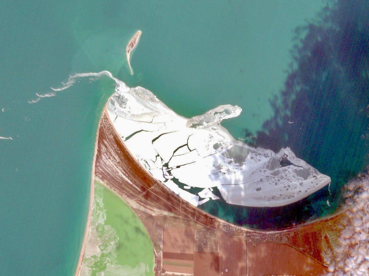 A huge drifting ice mass stretching over seven kilometers was spotted near the state nature reserve «Maloye Fillofornoye Pole» (Small Phyllophora Field). The ice field was found tightly pressed against the Bakalskaya Spit.