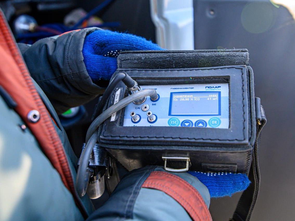 Sensors with complex names are immersed into the pipe. First, temperature and carbon dioxide content are measured, then another device measures the flow velocity coming out of the boilers. This is needed to determine how long the filters installed on another device were used.