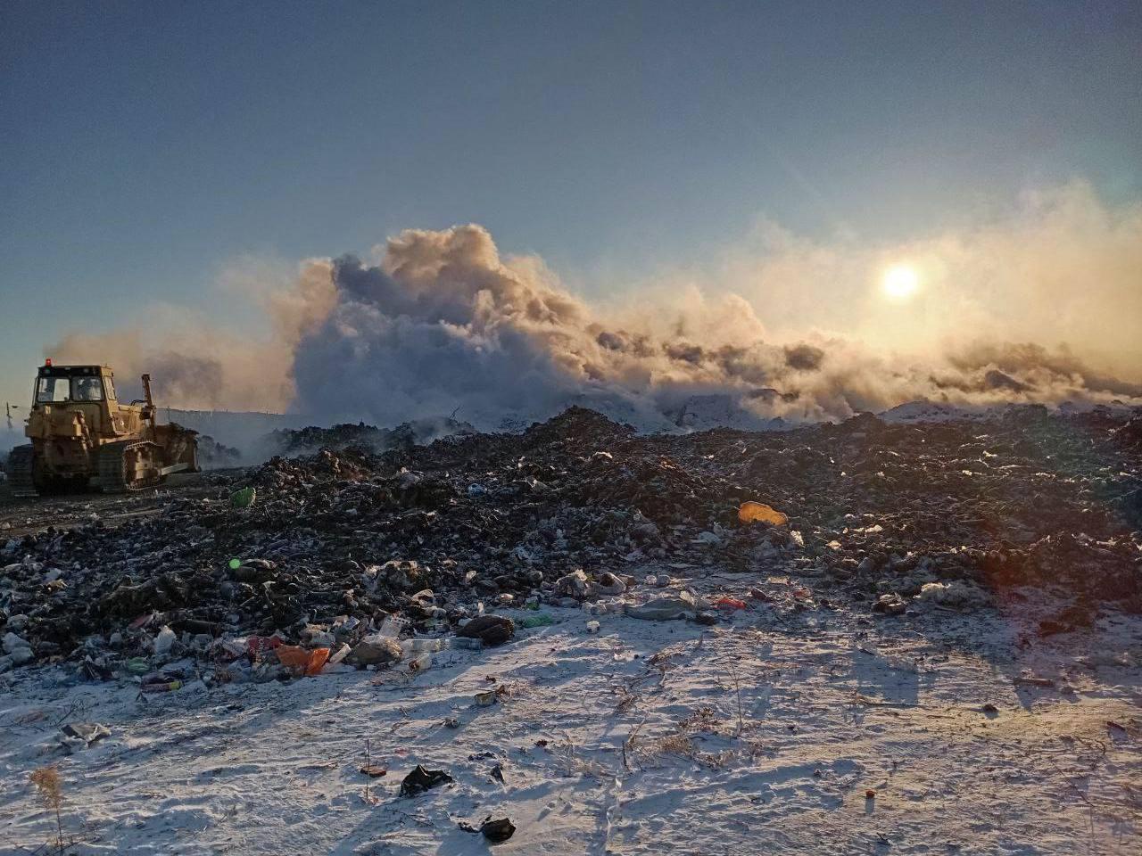 A message in the district«s Telegram channel on January 20 stated that machinery was again working at the Uletovsky solid waste landfill. A bulldozer was cutting off burning piles of garbage while firefighters from unit No. 36 were dousing the burning areas.