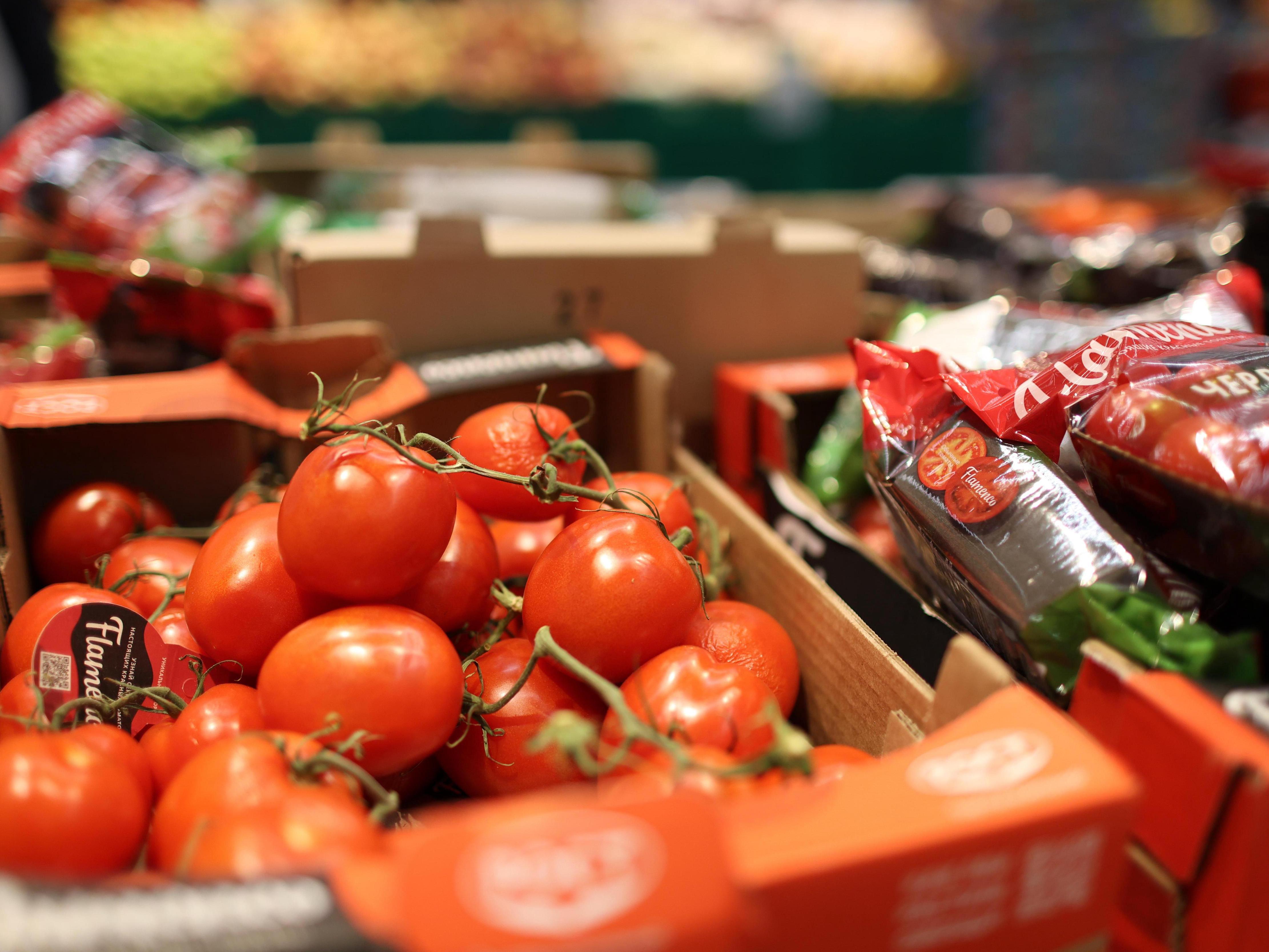 Tomatoes: was 252.67 rubles (about $3), became 245.80 rubles (about $3) (decreased by 2.72%);