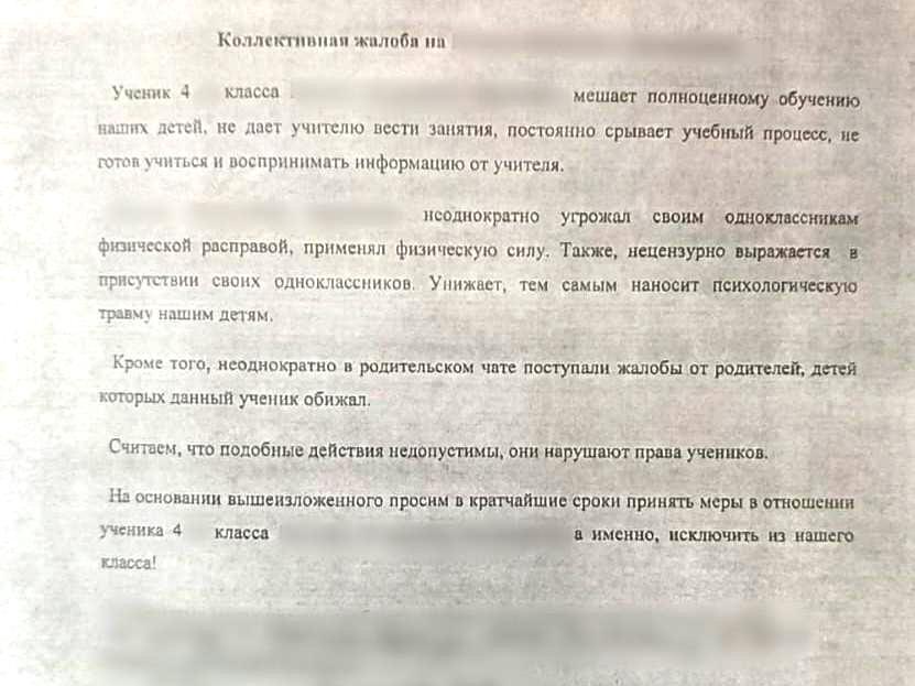 «We parents call this trio a gang among ourselves. We have already periodically written complaints about them to the principal and to the Juvenile Affairs Department. They always attack in threes,» Alena told E1.RU. «My son is forced to leave the classroom during breaks, taken to places without cameras or adults, and beaten. Then they go to class and after school start pressuring him, ordering him to go behind the garages for a fight.»