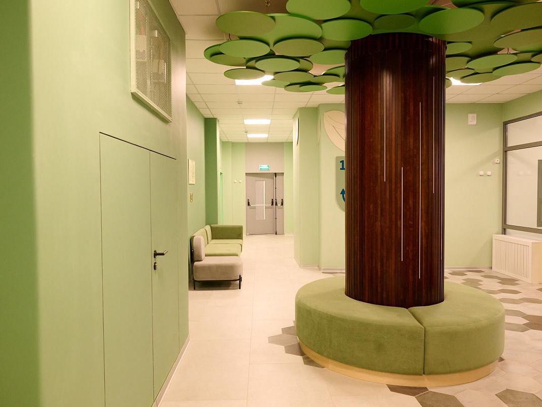 The area of the new kindergarten«s territory is 0.6 hectares, with plans to green more than half: creating a green perimeter with trees, shrubs, flower beds, and lawns. Builders preserved Pitsunda pines, which are listed in the Red Book, on the site.