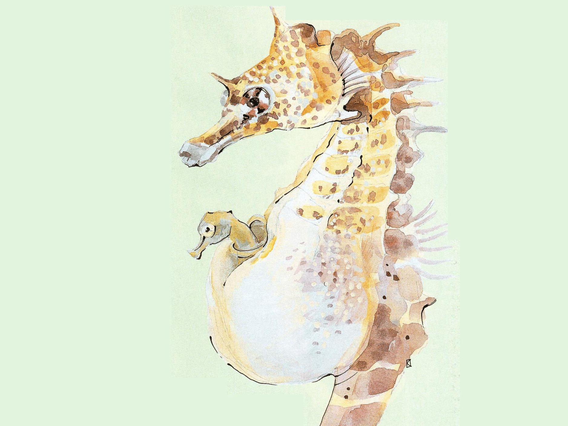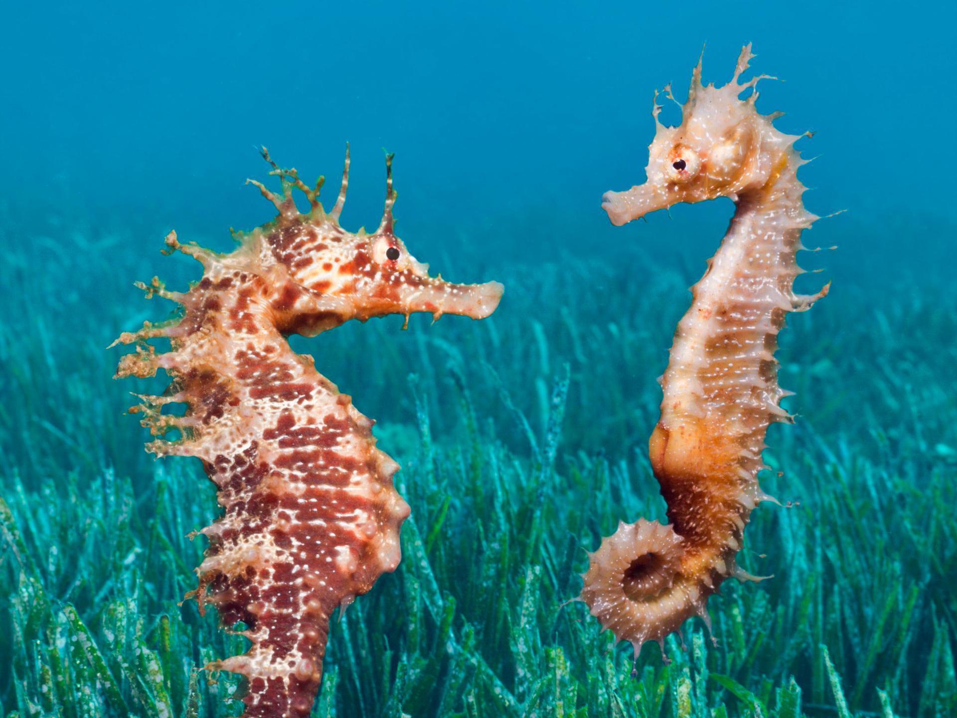 Reproduction in seahorses is an amazing spectacle. Many species form stable pairs that can last for several seasons, and sometimes years. Courtship resembles an elegant, prolonged dance. Partners meet, entwine each other with their tails, and whirl among seaweed, synchronizing their movements.