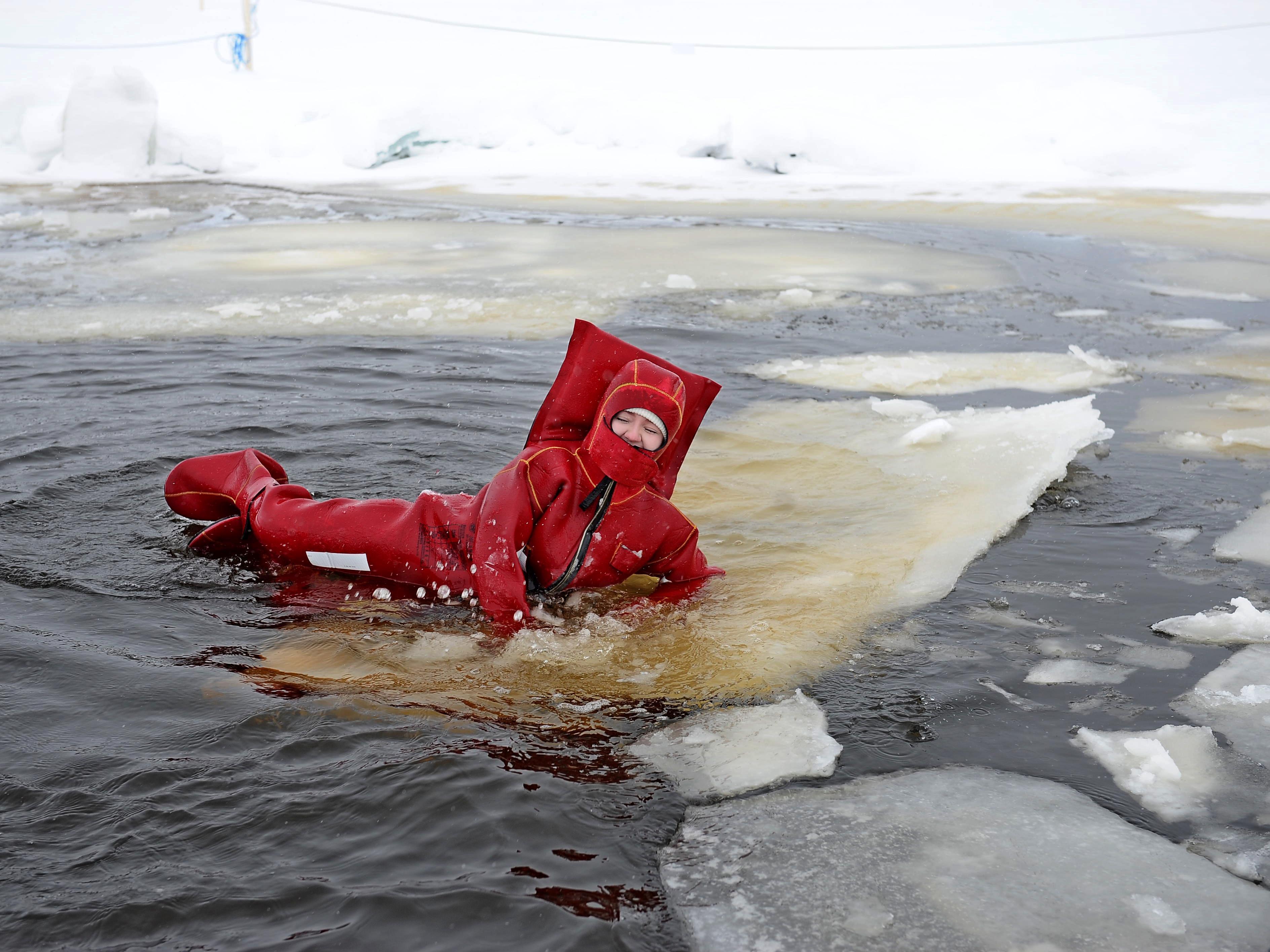 The swim lasts about 40 minutes: during this time, you have time to sit on the ice floes and on the improvised edges, and lie on your back... And the bravest try swimming on their stomach — that«s also safe.