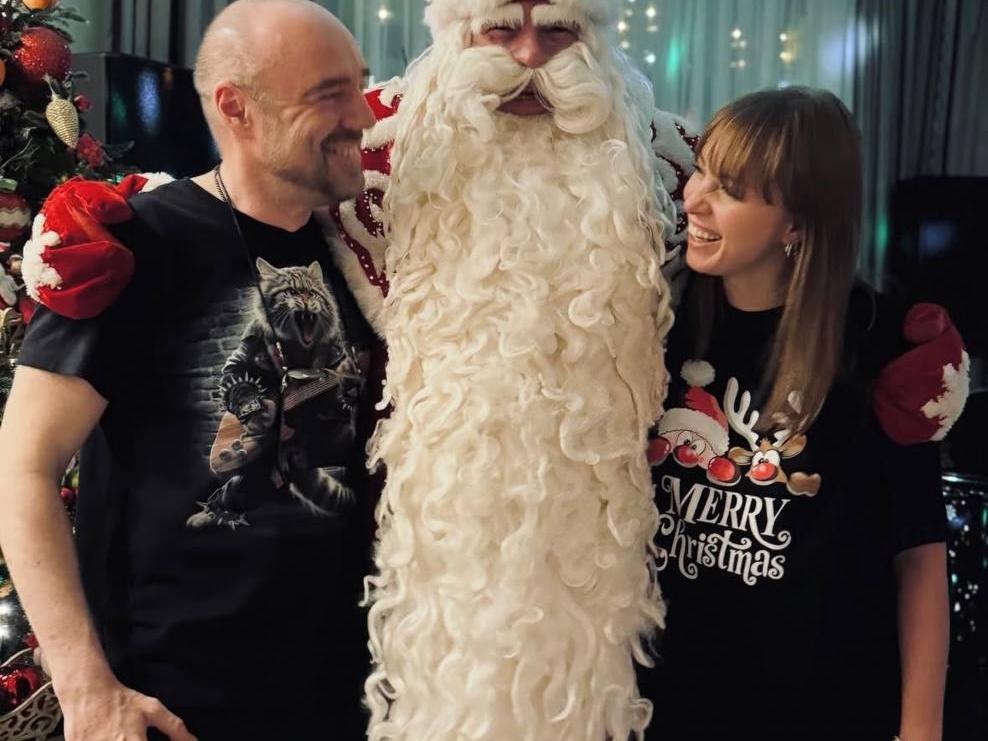 Roman and Polina celebrated the holiday with a large group of friends. A fun mood was created by an animator in a Ded Moroz (Father Frost) costume.