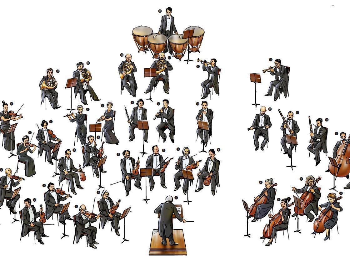 Today, entering a concert hall, we see an orchestra ready to perform. After tuning and applause, the conductor begins to lead the musicians, whose placement on stage is not accidental but a thoughtful system honed over centuries.