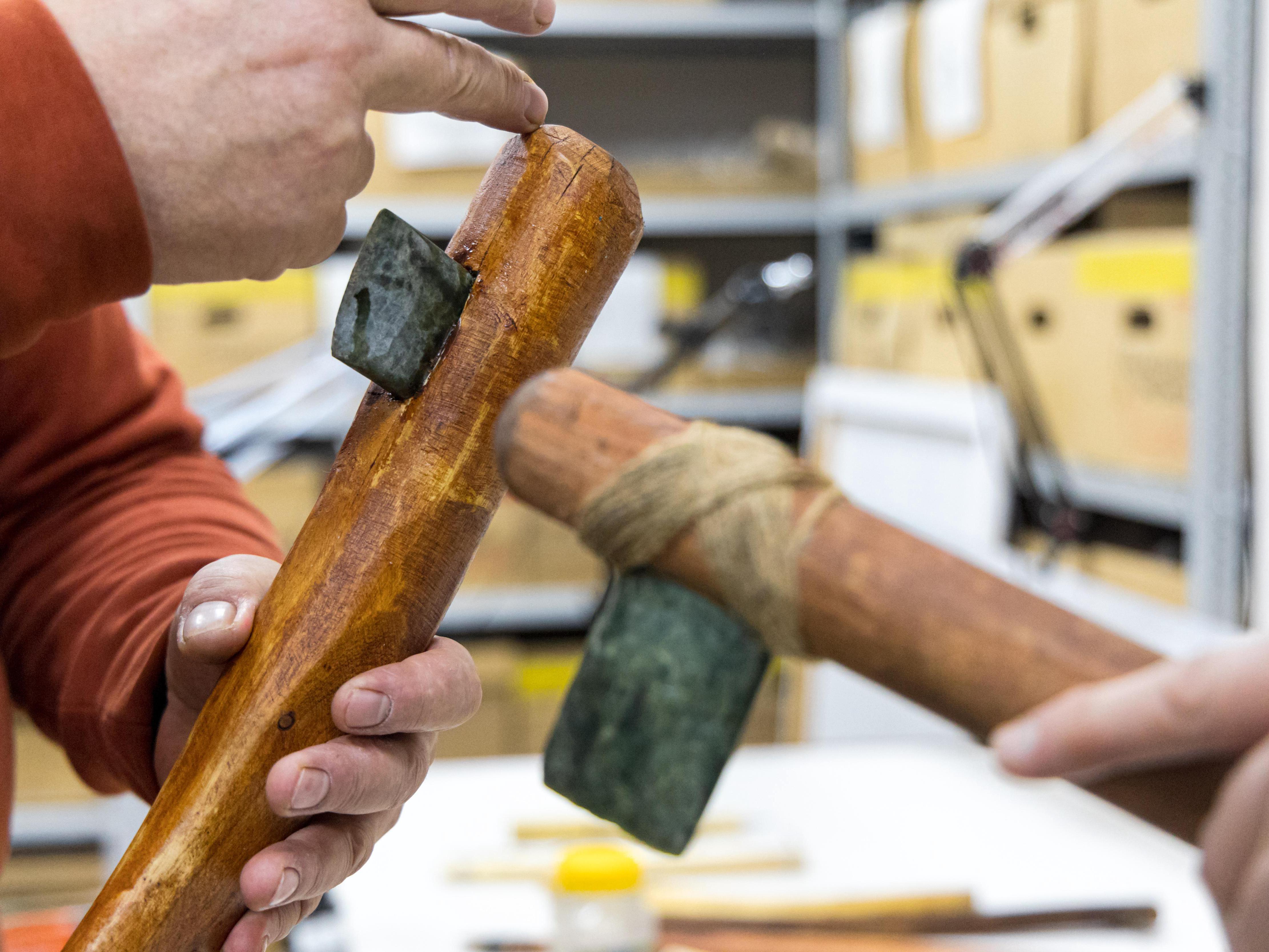 — You know, it all depends on the situation. There are different approaches. If you only need to research the function of a given item, you can even glue it with epoxy. But to understand how they made it back then, you adhere to what was possible at the time. Well, for example, the glue here — resin with wax and sand.