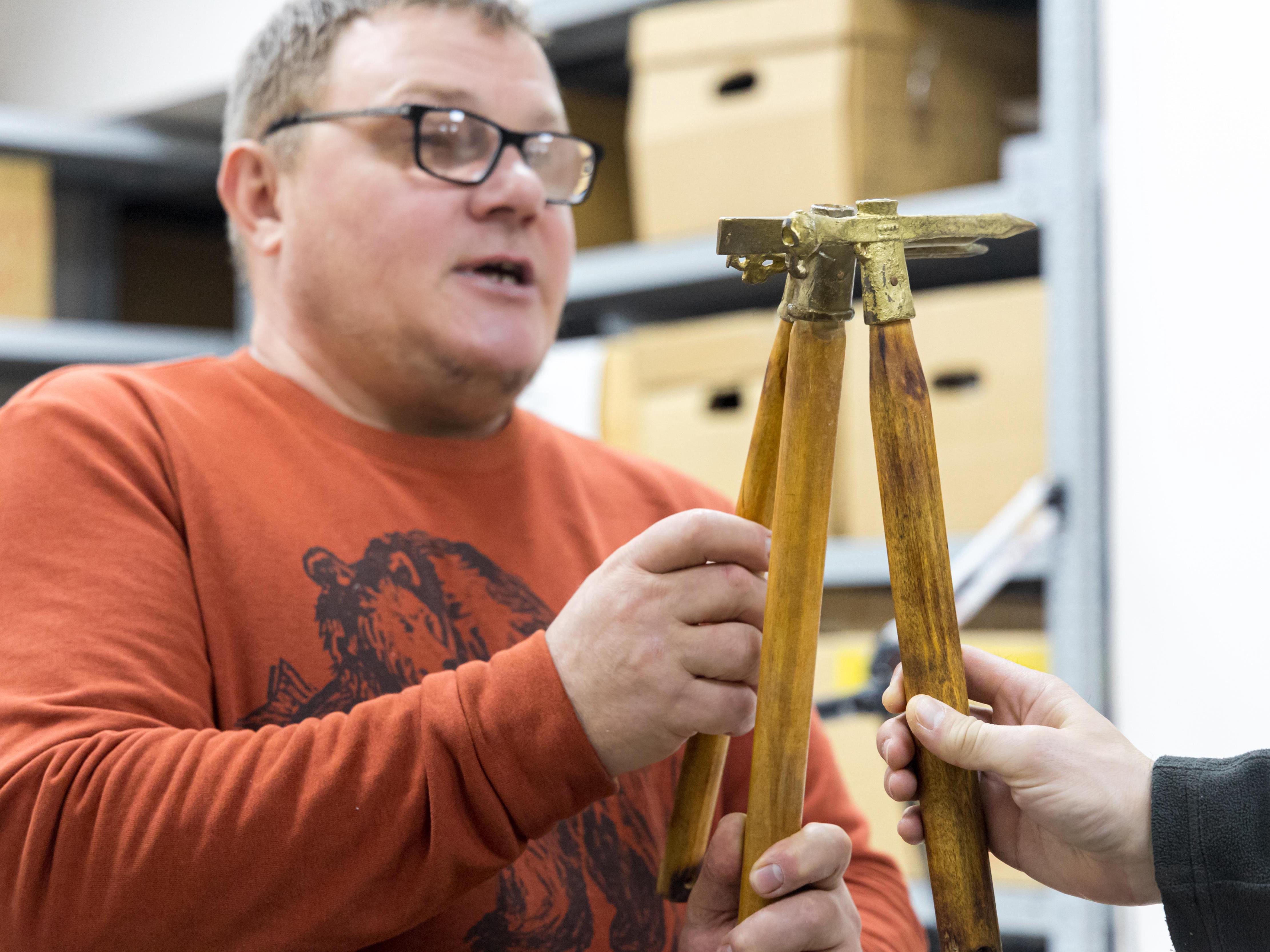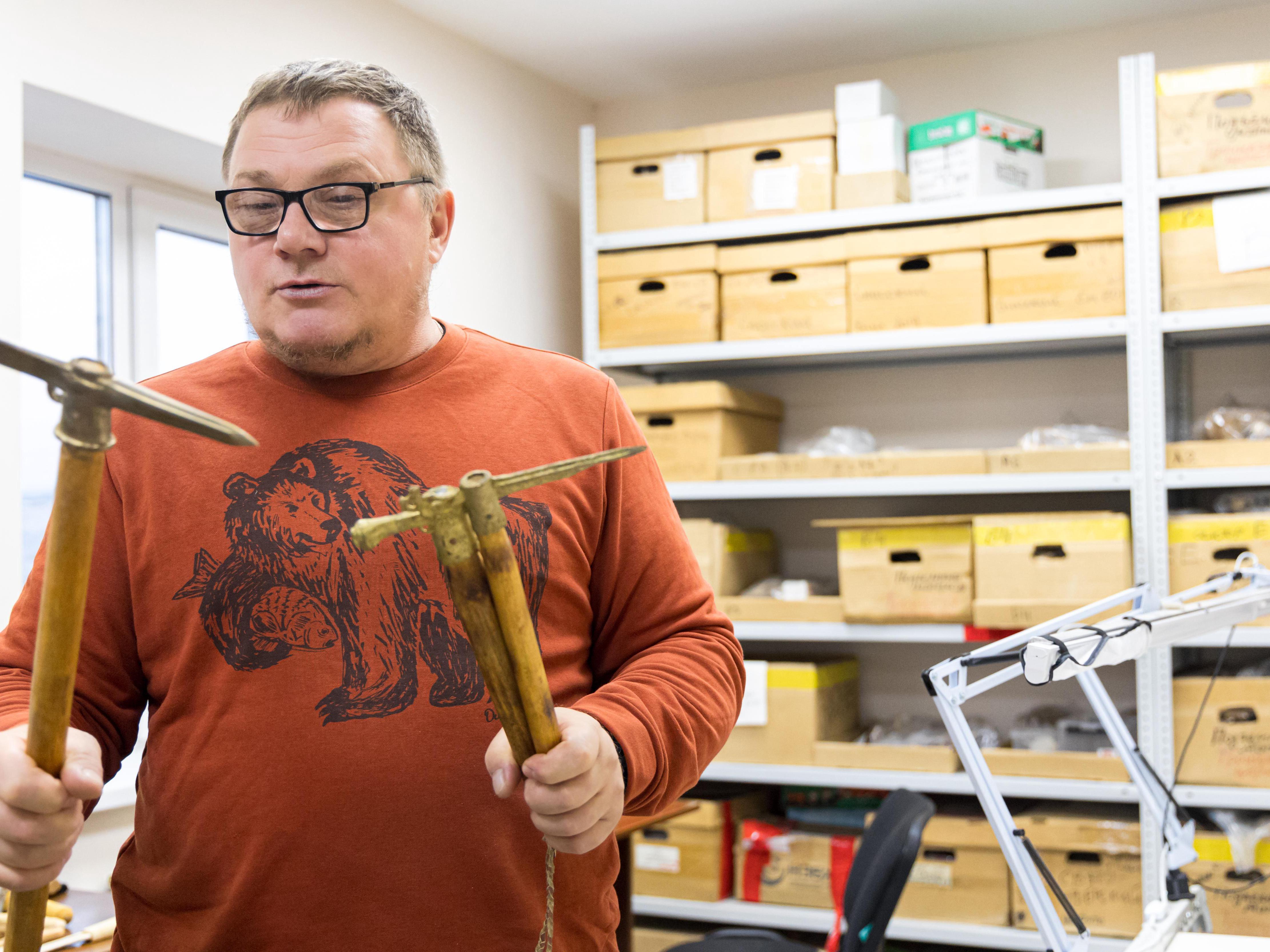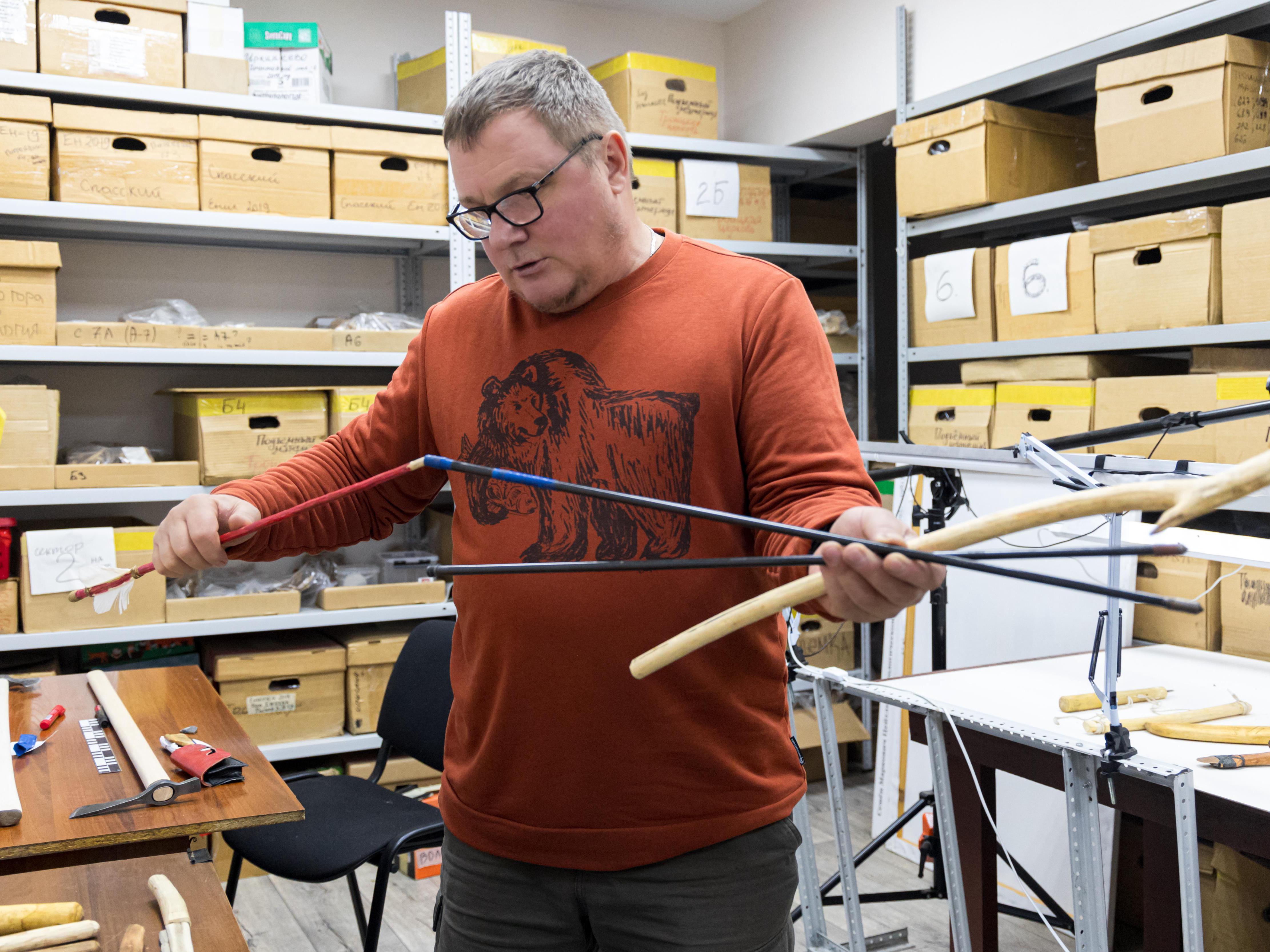 The storage room for artifacts, which doubles as archaeologist Andrey Petrenko«s workshop, is located in the suburbs. This is convenient: he can go outside with a boomerang, an ancient combat bow, or a spear-thrower in hand without risk of alarming anyone. He tests how these worked thousands of years ago.