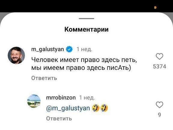 After the publication of «Svobodnaya,» stars also noticed Ksenia«s account: comedian Elena Vorobey and Comedy Woman participant Ekaterina Varnava subscribed to it. Among those who paid attention to KMKh»s work was actor and comedian Mikhail Galustyan.
