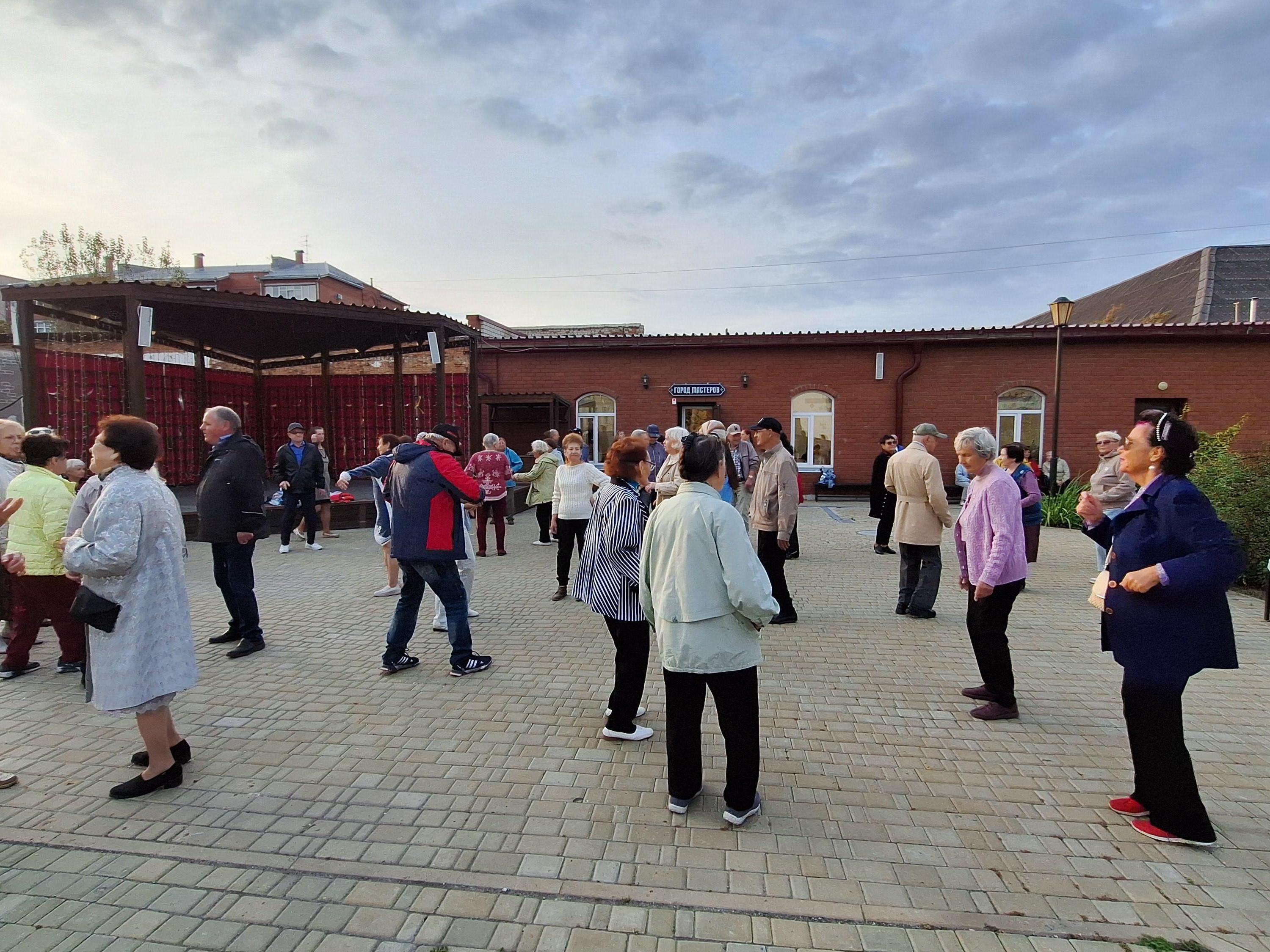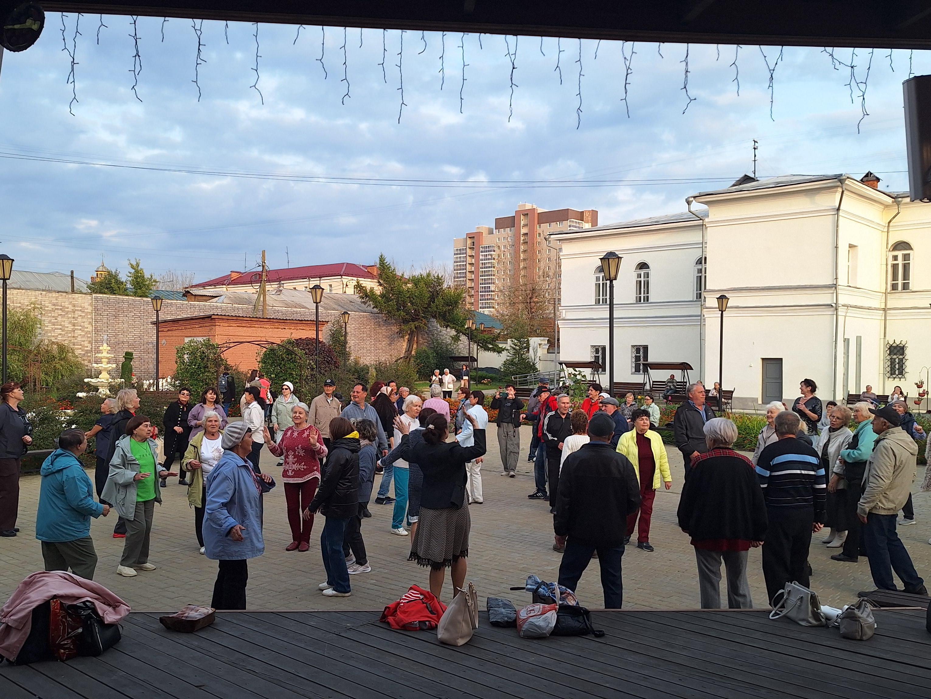 Kurgan retirees dance in museum square