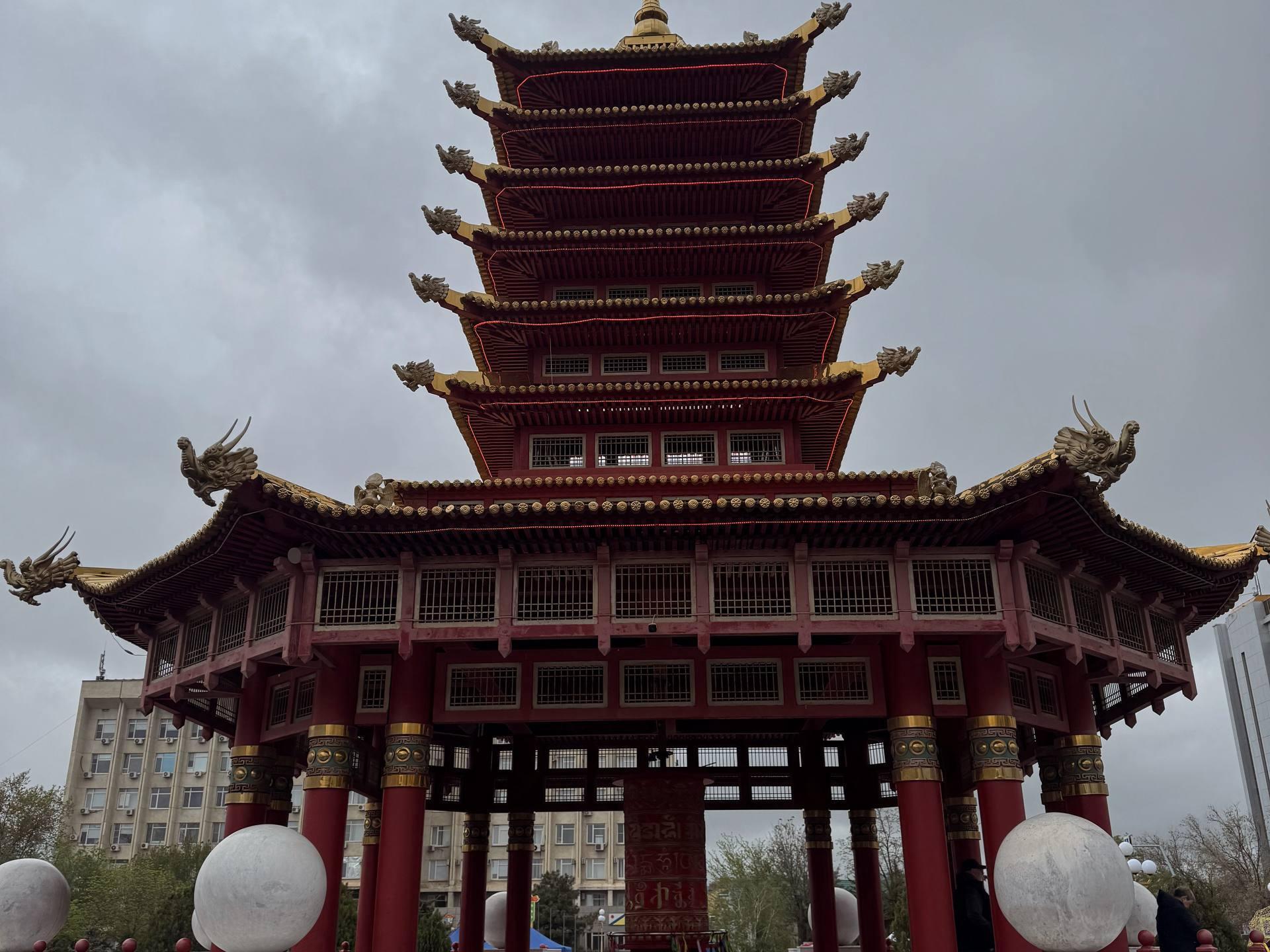 But then we went to Lenin Square, where the Pagoda of Seven Days is located. The name is associated with the seven buddhas who came to our world. Here, a «kürde» drum is located. Its body is adorned with a prayer written in three languages. It is an appeal to the Buddhist god Avalokiteshvara. The pagoda«s dome consists of 7 tiers, each dedicated to a specific day of the week, speaking to the cyclicity of human life.